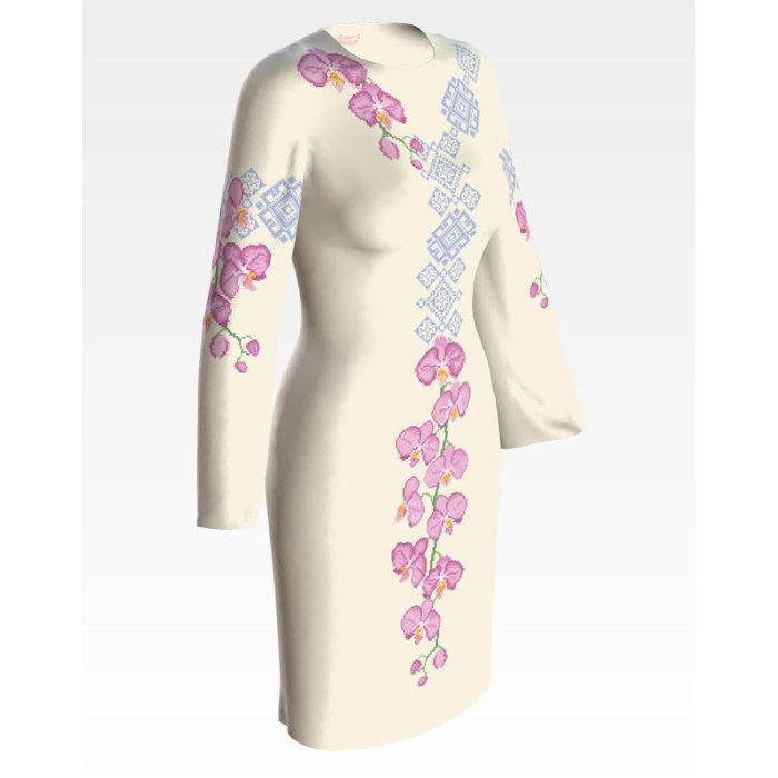 Заготовка для вишивки жіночої сукні Ніжні орхідеї призначена для часткової зашивки бісером або нитками. Схема надрукована на домотканому полотні бежевого кольору екологічно чистими стійкими фарбами, що не змиваються після прання. Відрізи розкроєні з урахуванням необхідних запасів для зручного вишивання та подальшого пошиття виробу.