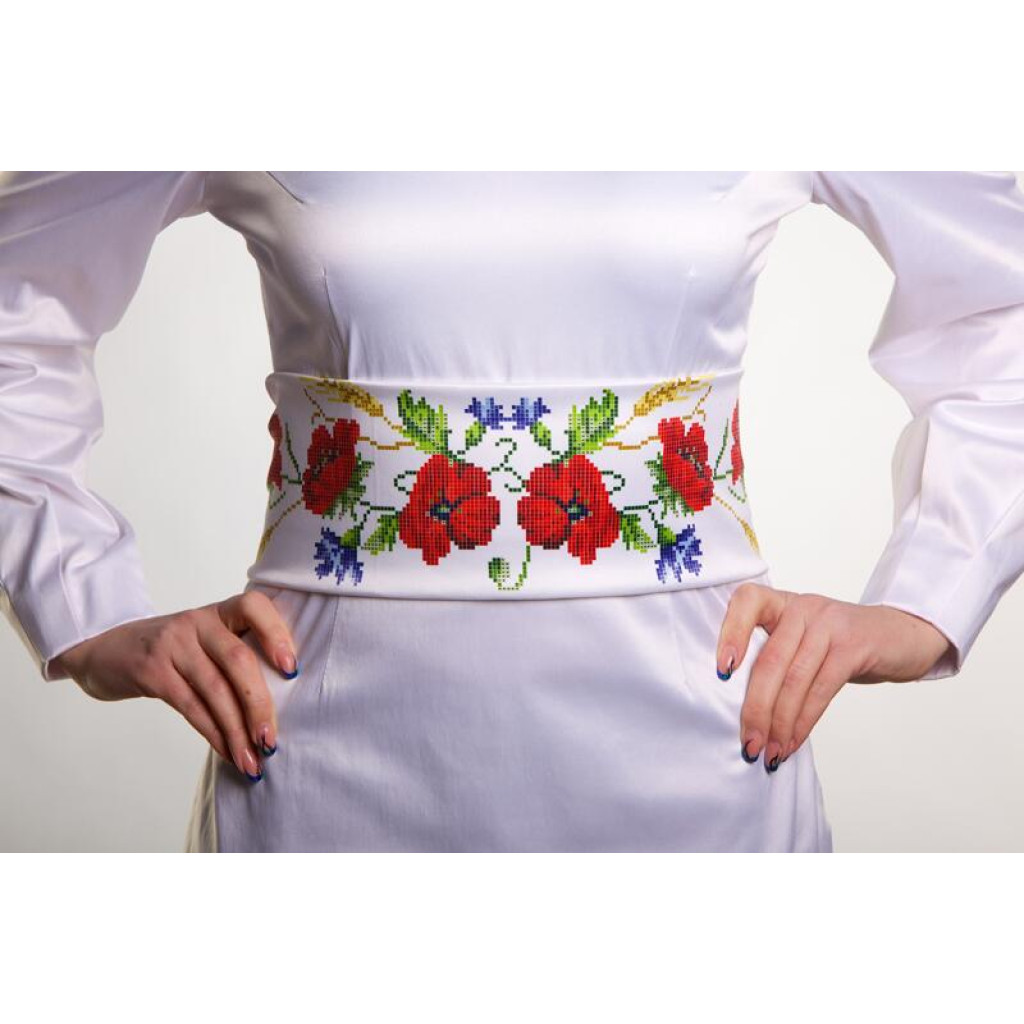 ПС013кБнннн Пояс жіночий, атлас-коттон, білий. Барвиста вишиванка. Заготовка для вишивки бісером