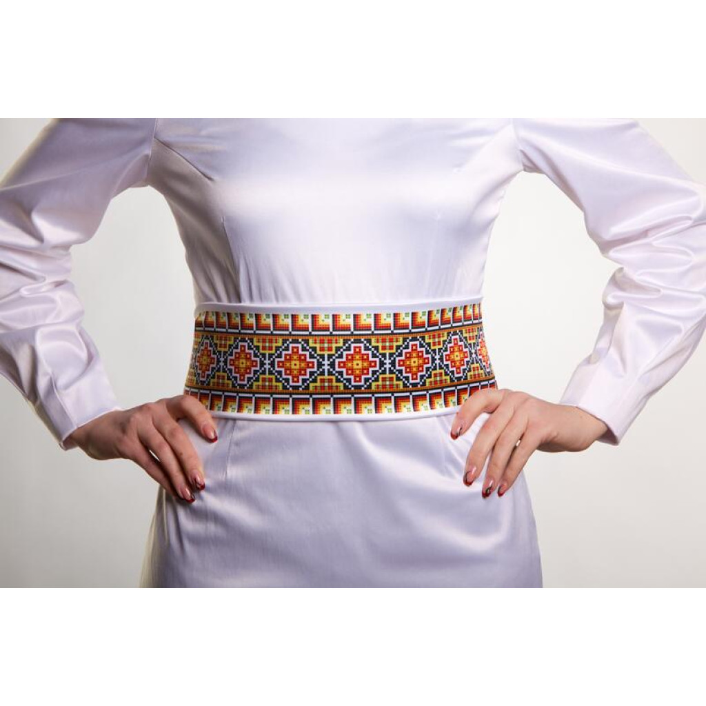 ПС028кБнннн Пояс жіночий, атлас-коттон, білий. Барвиста вишиванка. Заготовка для вишивки бісером