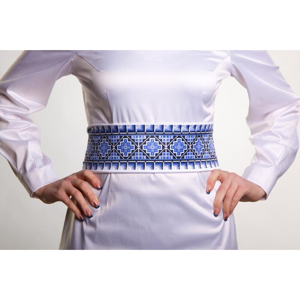 ПС031кБнннн Пояс жіночий, атлас-коттон, білий. Барвиста вишиванка. Заготовка для вишивки бісером