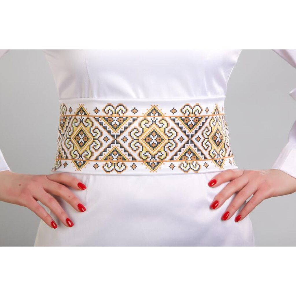 ПС033кБнннн Пояс жіночий, атлас-коттон, білий. Барвиста вишиванка. Заготовка для вишивки бісером