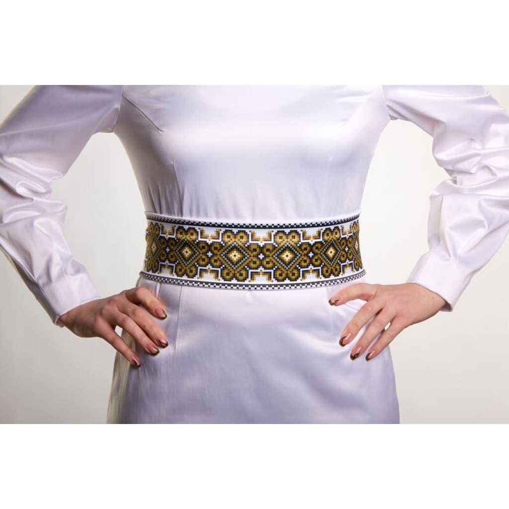 ПС038кБнннн Пояс жіночий, атлас-коттон, білий. Барвиста вишиванка. Заготовка для вишивки бісером