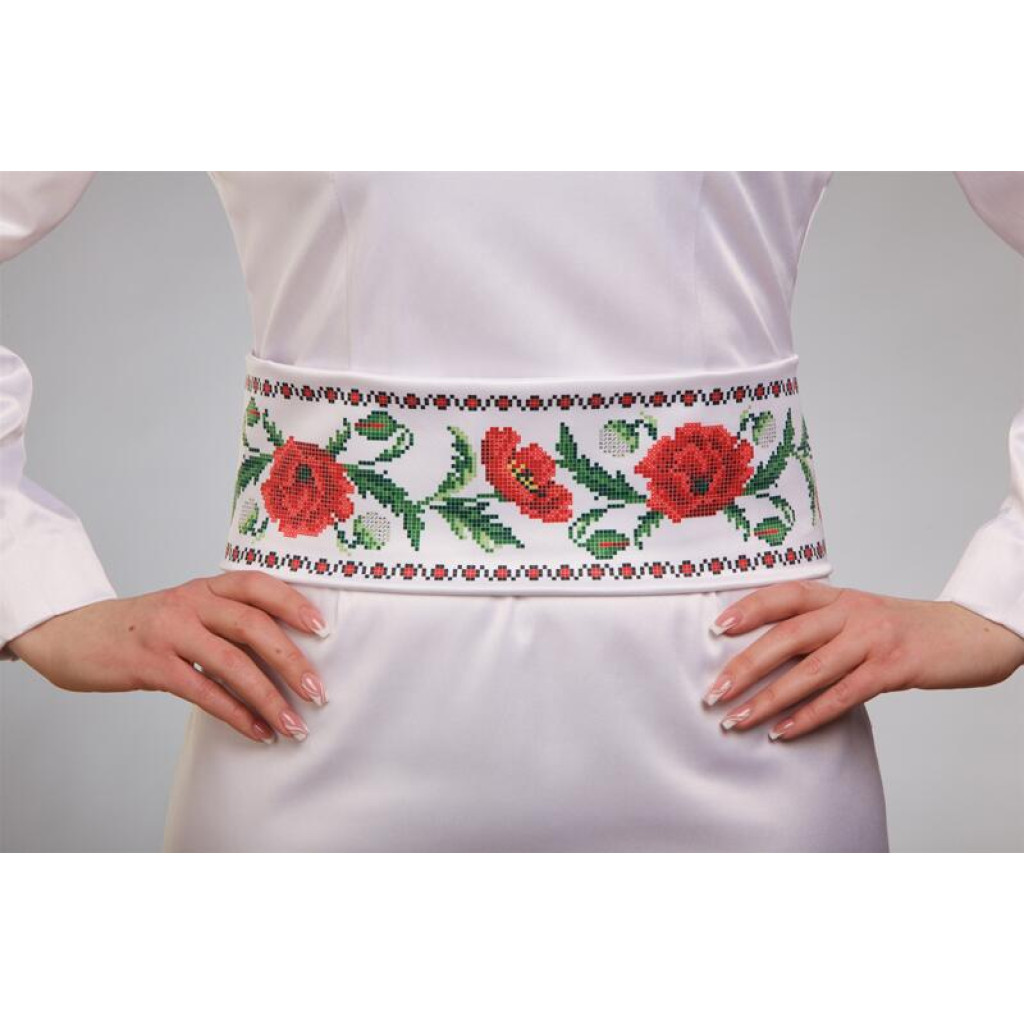 ПС050кБнннн Пояс жіночий, атлас-коттон, білий. Барвиста вишиванка. Заготовка для вишивки бісером