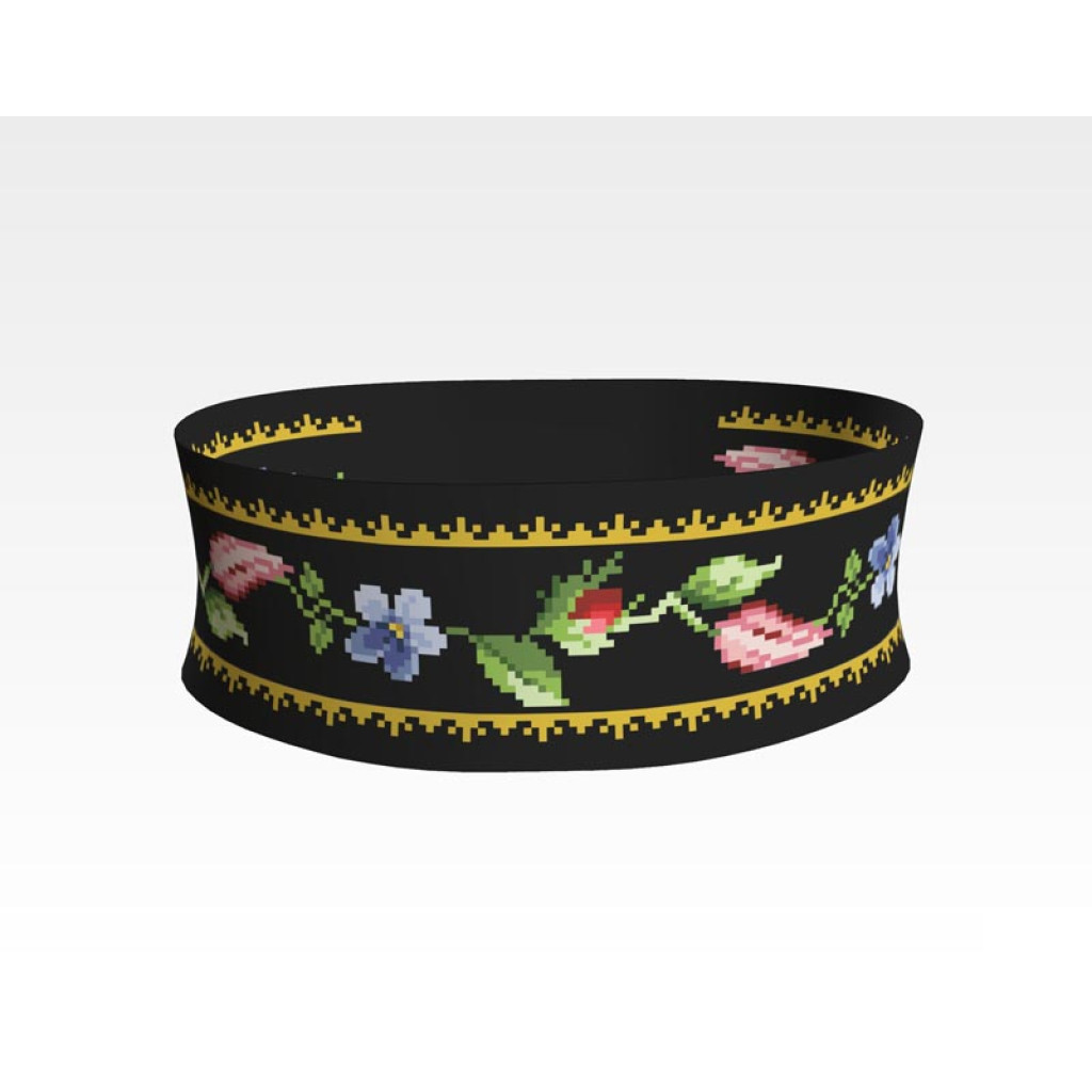 ПС036кЧнннн Пояс жіночий, атлас-коттон, чорний. Барвиста вишиванка. Заготовка для вишивки бісером