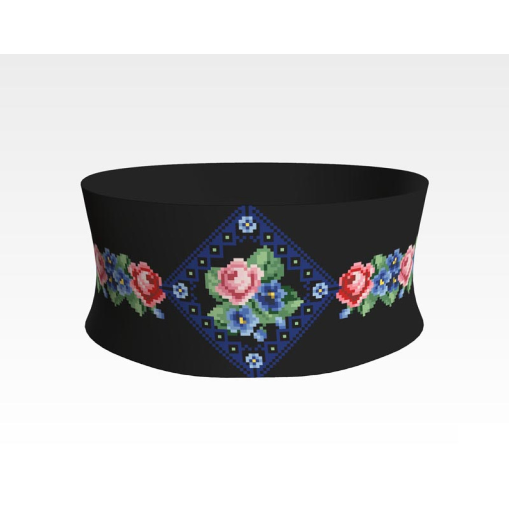 ПС053кЧнннн Пояс жіночий, атлас-коттон, чорний. Барвиста вишиванка. Заготовка для вишивки бісером