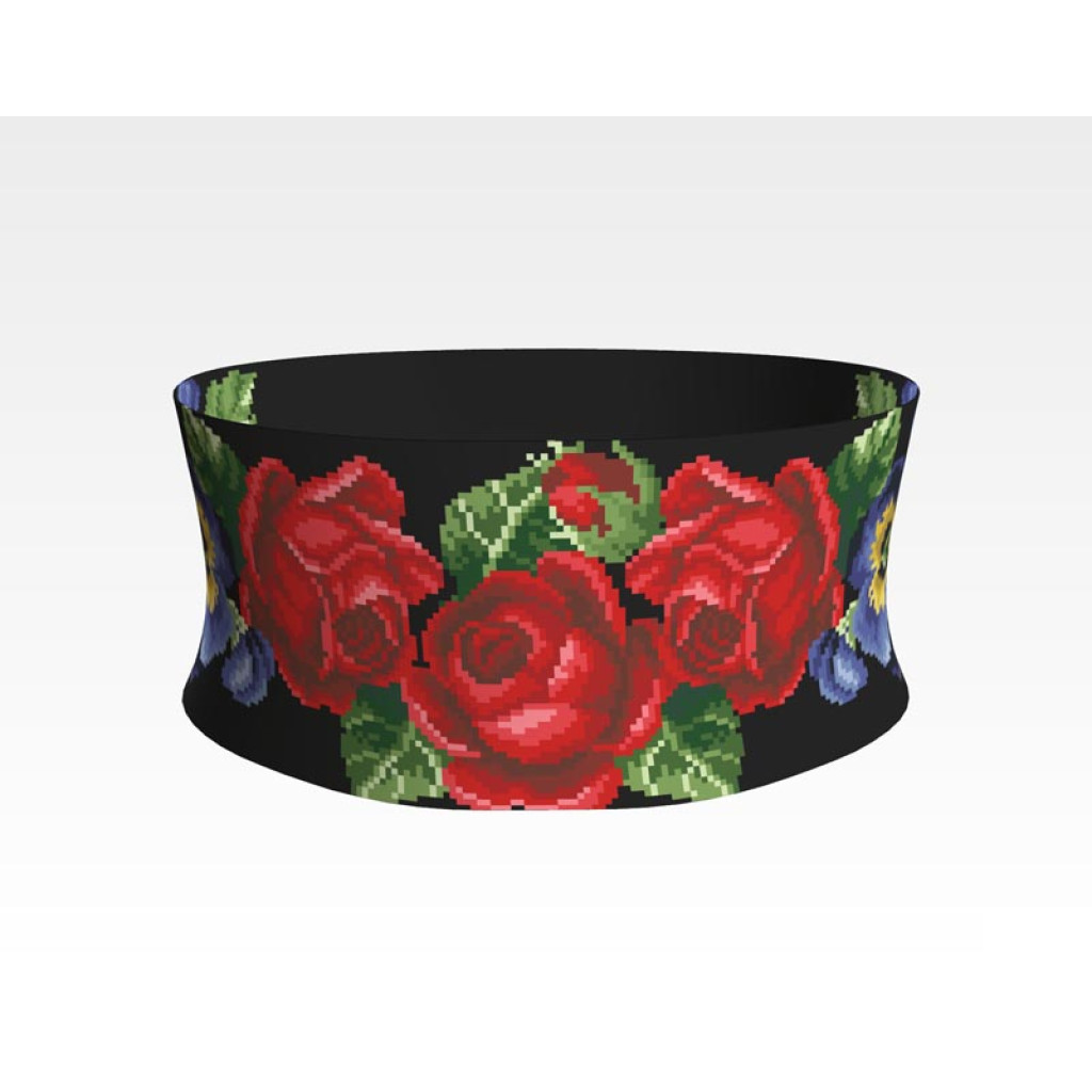 ПС056кЧнннн Пояс жіночий, атлас-коттон, чорний. Барвиста вишиванка. Заготовка для вишивки бісером