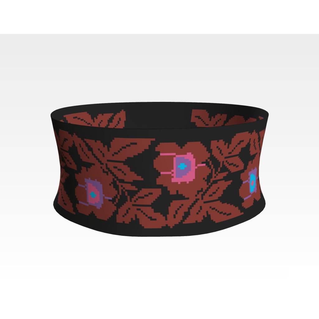 ПС069кЧнннн Пояс жіночий, атлас-коттон, чорний. Барвиста вишиванка. Заготовка для вишивки бісером