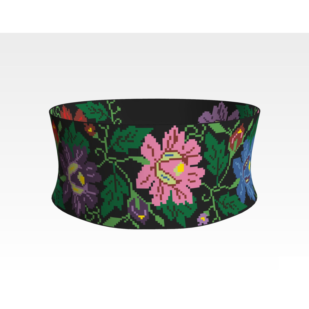 ПС093кЧнннн Пояс жіночий, атлас-коттон, чорний. Барвиста вишиванка. Заготовка для вишивки бісером