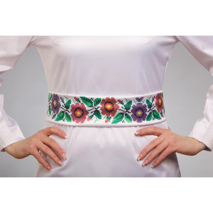 ПС141лБнннн Барвиста вишиванка Заготовка для вишивки - Пояс жіночий Елегантність р.42-54 льон, білий