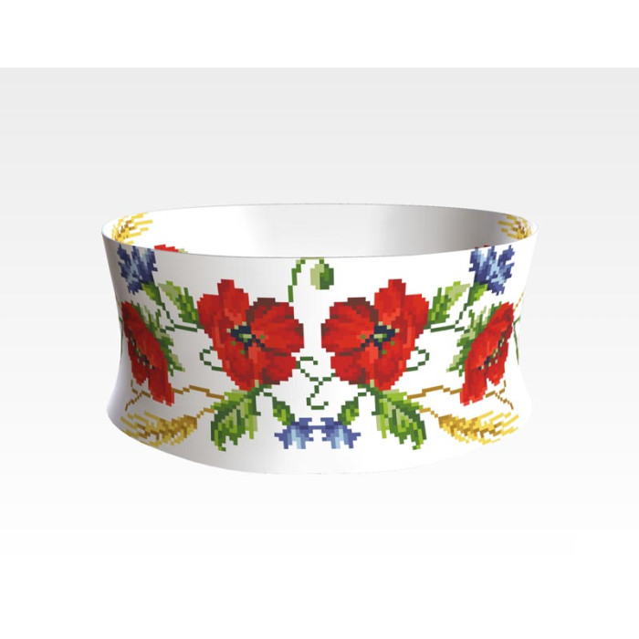 Заготовка для вишивки жіночого пояса Маки, волошки, колоски призначена для часткової зашивки бісером або нитками. Схема надрукована на білому габардині екологічно чистими стійкими фарбами, що не змиваються після прання. Відріз має достатні запаси для зручного вишивання та подальшого пошиття пояса.