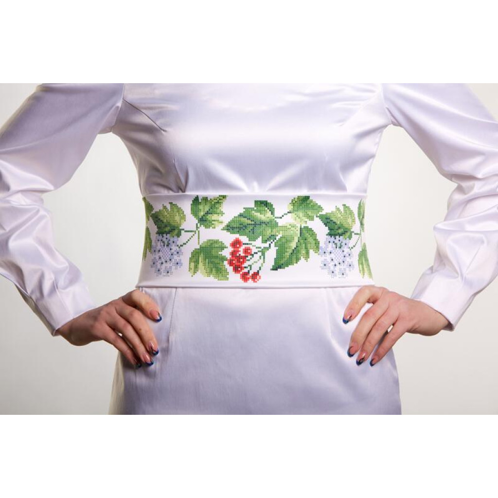 ПС016пБнннн Барвиста вишиванка Заготовка для вишивки - Пояс жіночий Цвіт калини р.42-54 габардин, білий