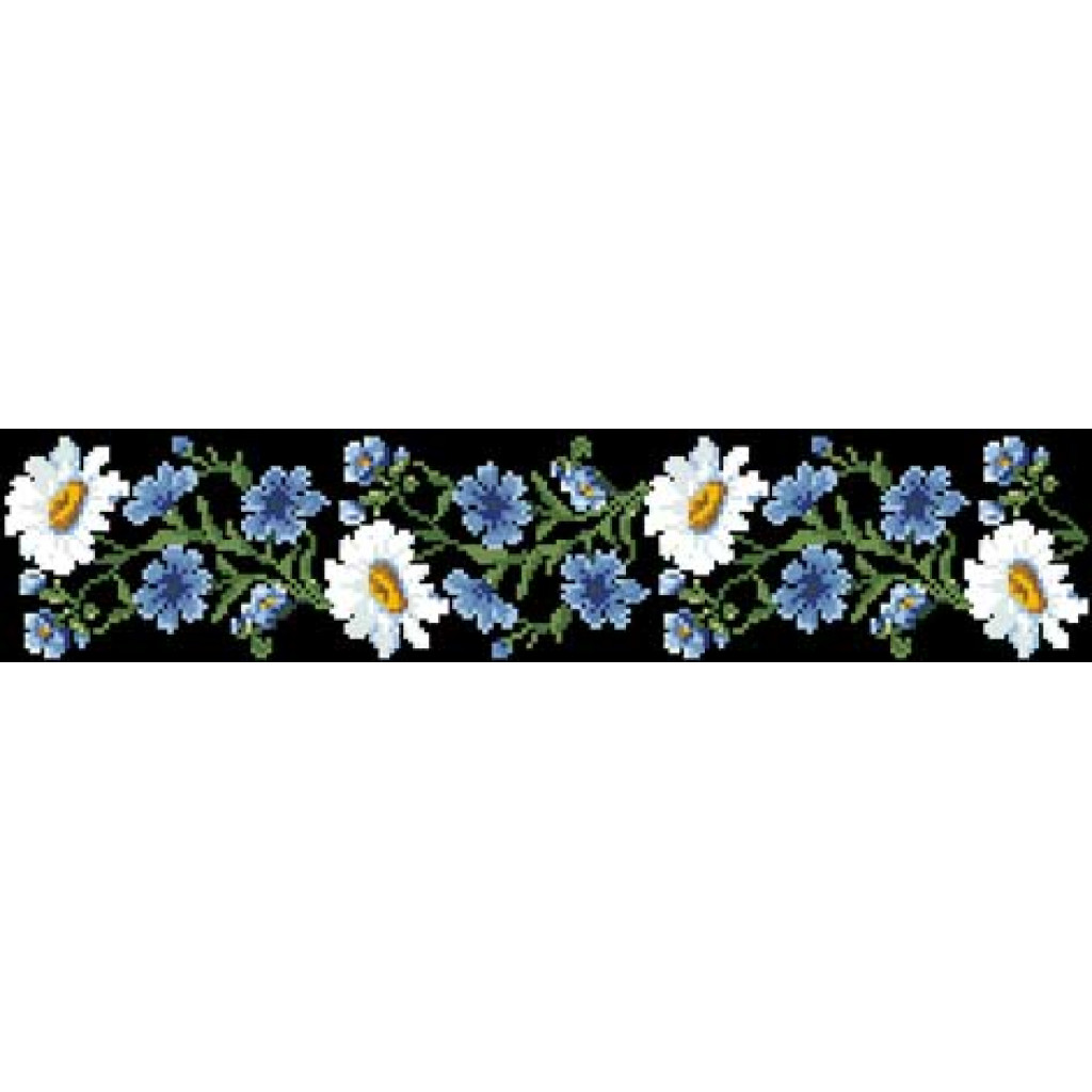Заготовка для вишивки жіночого пояса Вишукані троянди, незабудки призначена для часткової зашивки бісером або нитками. Схема надрукована на шовковій тканині чорного кольору екологічно чистими стійкими фарбами, що не змиваються після прання. Відріз має достатні запаси для зручного вишивання та подальшого пошиття пояса.