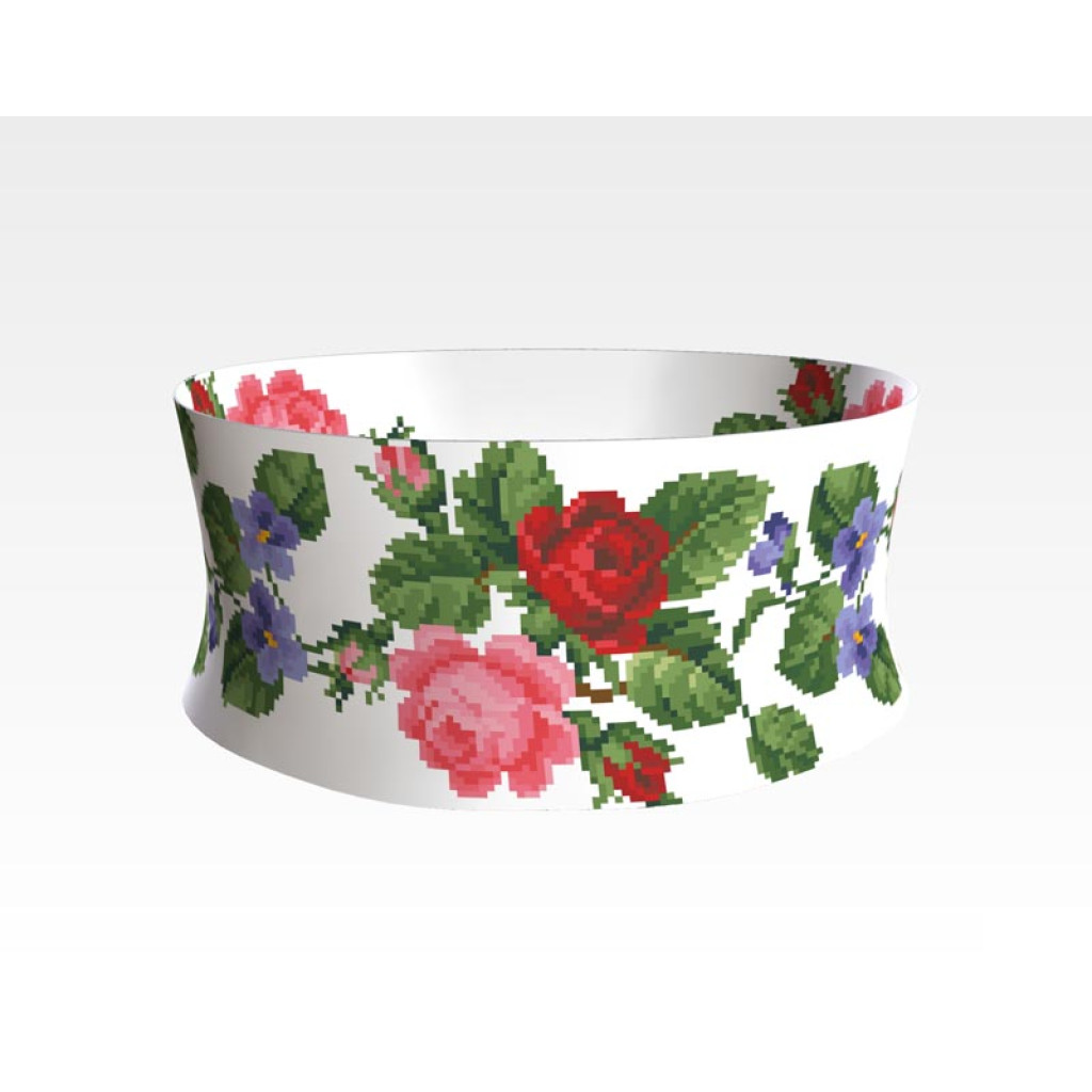 Заготовка для вишивки жіночого пояса Троянди, фіалки, конвалії призначена для часткової зашивки бісером або нитками. Схема надрукована на білому габардині екологічно чистими стійкими фарбами, що не змиваються після прання. Відріз має достатні запаси для зручного вишивання та подальшого пошиття пояса.