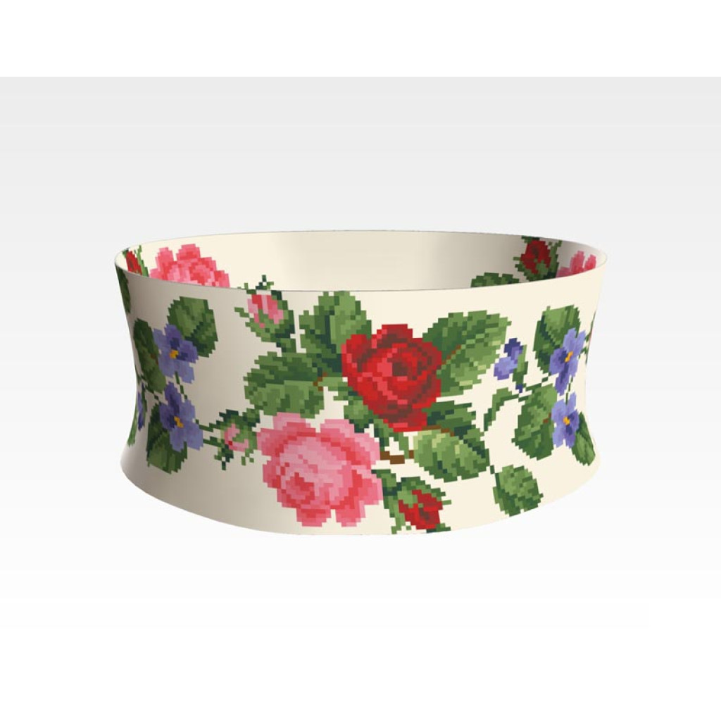 Заготовка для вишивки жіночого пояса Троянди і фіалки призначена для часткової зашивки бісером або нитками. Схема надрукована на шовковій тканині бежевого кольору екологічно чистими стійкими фарбами, що не змиваються після прання. Відріз має достатні запаси для зручного вишивання та подальшого пошиття пояса.
