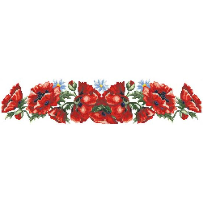 Заготовка для вишивки жіночого пояса Маки червоні призначена для часткової зашивки бісером або нитками. Схема надрукована на білому габардині екологічно чистими стійкими фарбами, що не змиваються після прання. Відріз має достатні запаси для зручного вишивання та подальшого пошиття пояса.