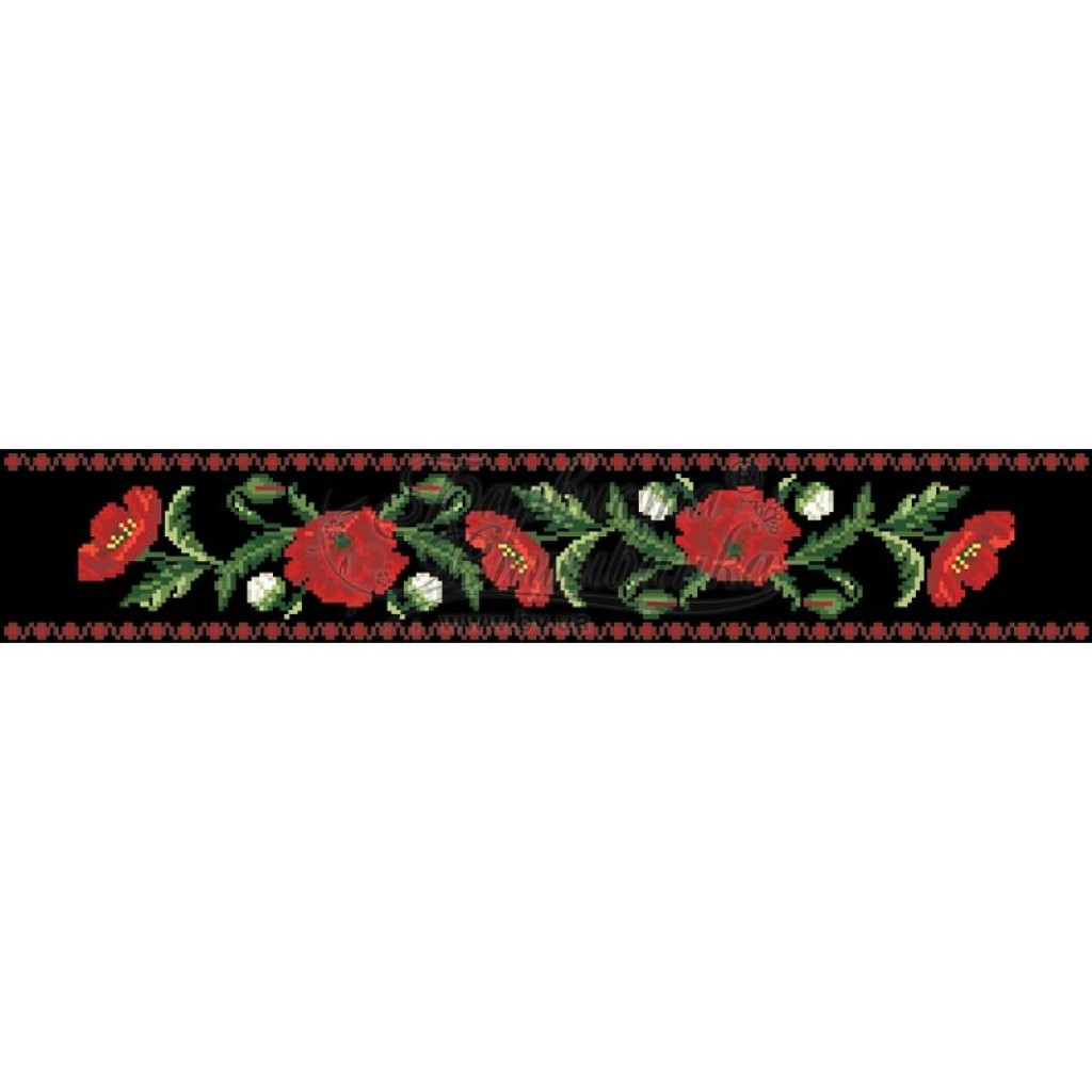 Заготовка для вишивки жіночого пояса Волошки призначена для часткової зашивки бісером або нитками. Схема надрукована на шовковій тканині чорного кольору екологічно чистими стійкими фарбами, що не змиваються після прання. Відріз має достатні запаси для зручного вишивання та подальшого пошиття пояса.