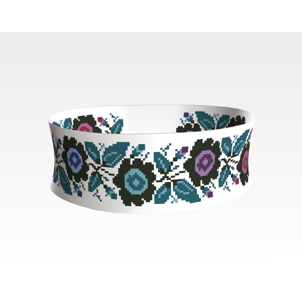 Заготовка для вишивки жіночого пояса Борщівська сучасна призначена для часткової зашивки бісером або нитками. Схема надрукована на білому габардині екологічно чистими стійкими фарбами, що не змиваються після прання. Відріз має достатні запаси для зручного вишивання та подальшого пошиття пояса.