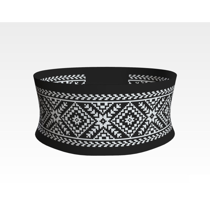 Заготовка для вишивки жіночого пояса Зірка призначена для часткової зашивки бісером або нитками. Схема надрукована на шовковій тканині чорного кольору екологічно чистими стійкими фарбами, що не змиваються після прання. Відріз має достатні запаси для зручного вишивання та подальшого пошиття пояса.