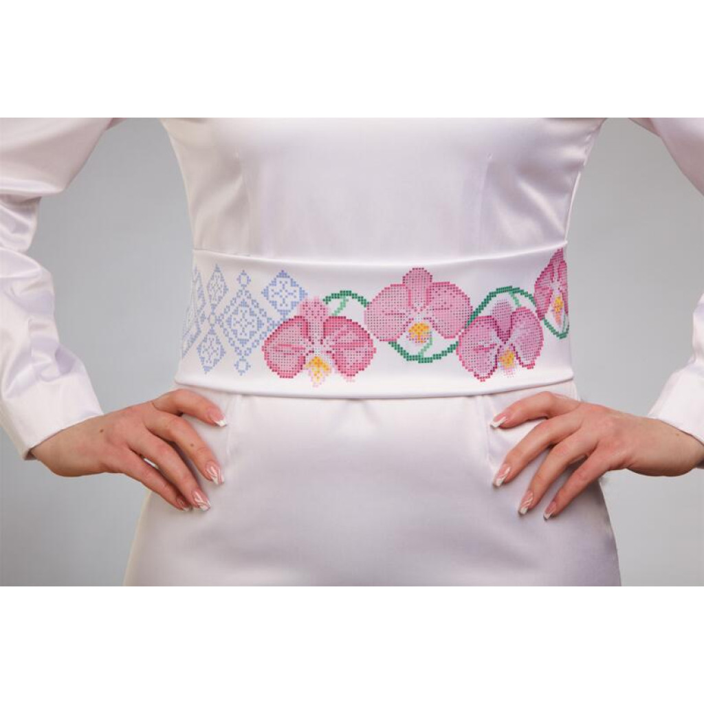 ПС087пБнннн Барвиста вишиванка Заготовка для вишивки - Пояс жіночий Ніжні орхідеї р.42-54 габардин, білий