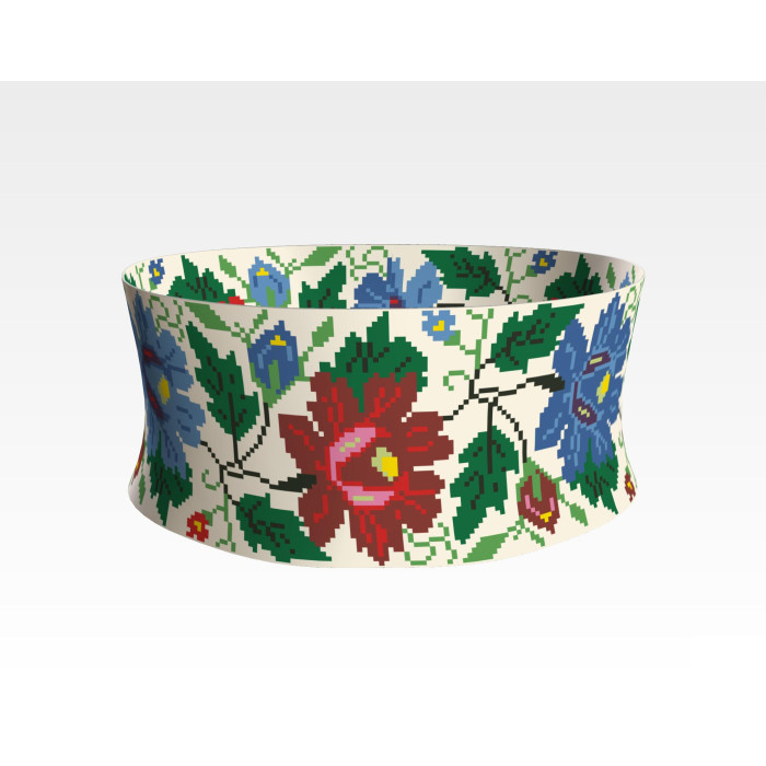 Заготовка для вишивки жіночого пояса Буковинська сучасна призначена для часткової зашивки бісером або нитками. Схема надрукована на шовковій тканині бежевого кольору екологічно чистими стійкими фарбами, що не змиваються після прання. Відріз має достатні запаси для зручного вишивання та подальшого пошиття пояса.