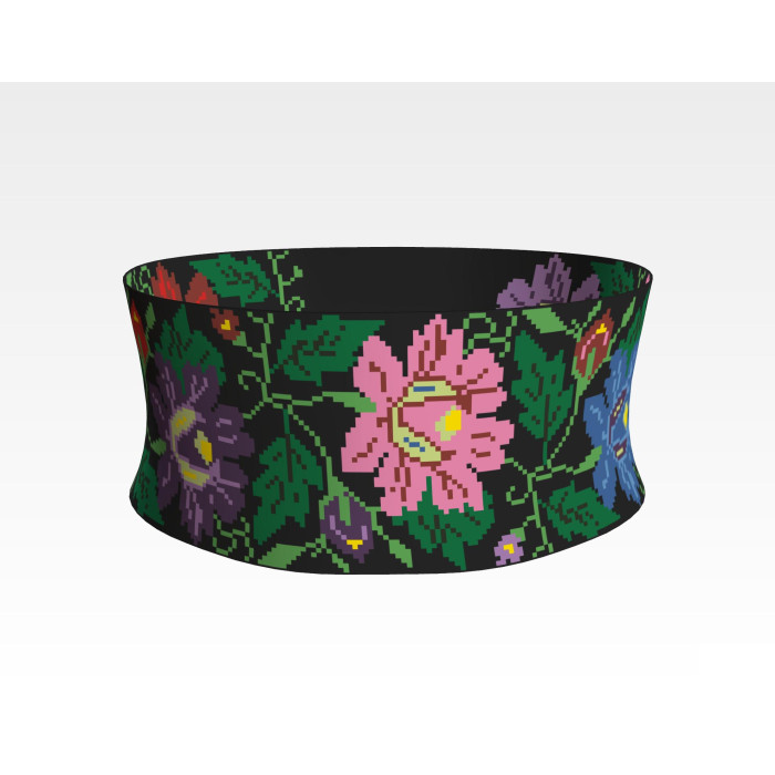 Заготовка для вишивки жіночого пояса Буковинський край призначена для часткової зашивки бісером або нитками. Схема надрукована на шовковій тканині чорного кольору екологічно чистими стійкими фарбами, що не змиваються після прання. Відріз має достатні запаси для зручного вишивання та подальшого пошиття пояса.