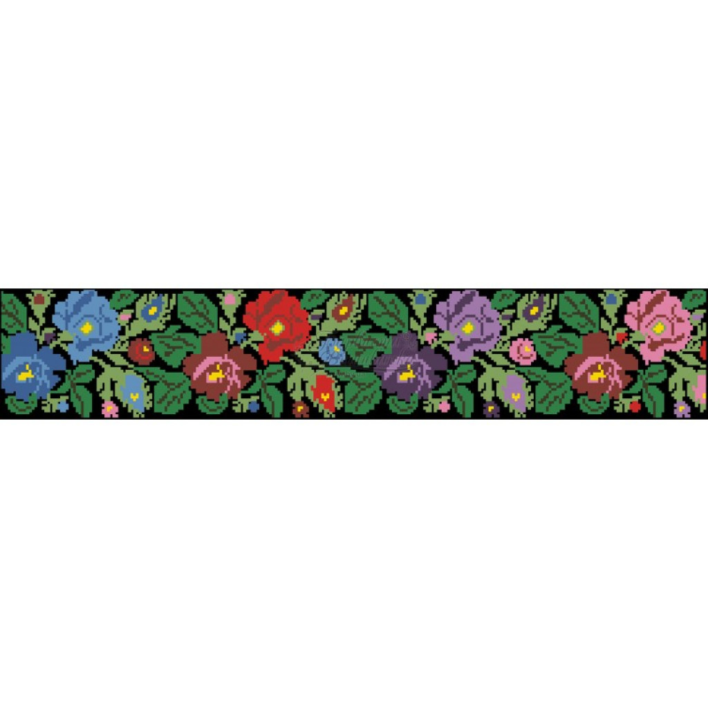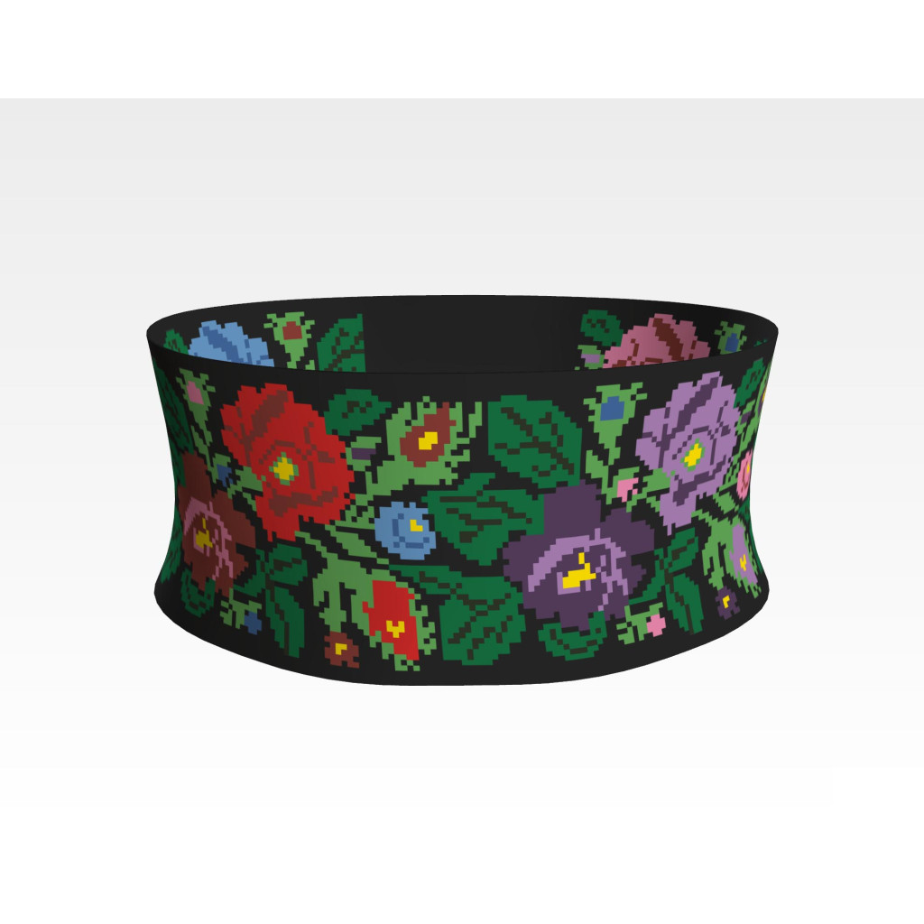 Заготовка для вишивки жіночого пояса Буковинська квітка призначена для часткової зашивки бісером або нитками. Схема надрукована на шовковій тканині чорного кольору екологічно чистими стійкими фарбами, що не змиваються після прання. Відріз має достатні запаси для зручного вишивання та подальшого пошиття пояса.