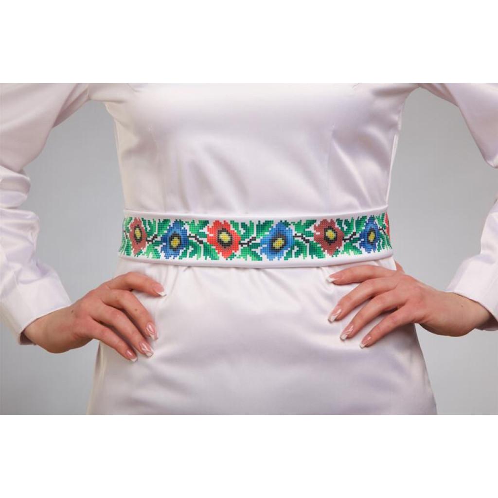 ПС097пБнннн Барвиста вишиванка Заготовка для вишивки - Пояс жіночий Буковинська сучасна р.42-54 габардин, білий
