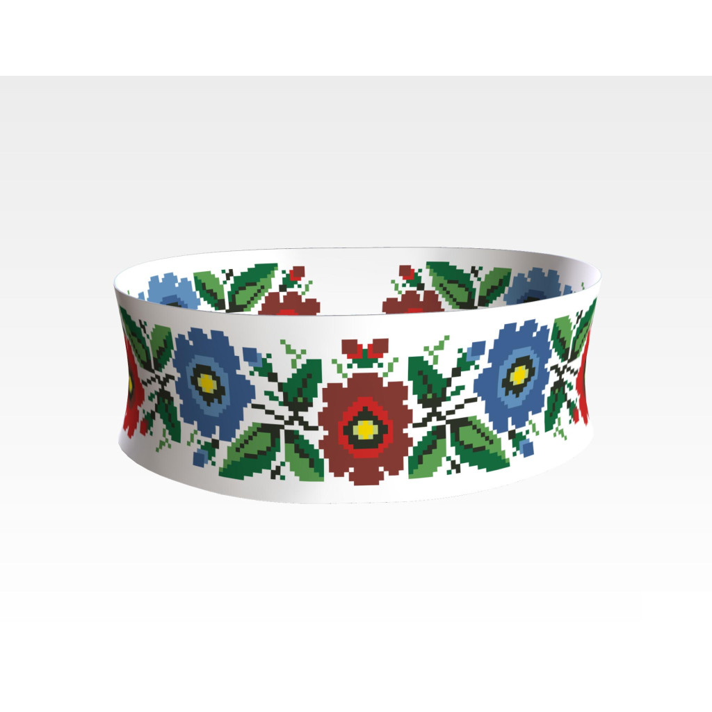 Заготовка для вишивки жіночого пояса Буковинська сучасна призначена для часткової зашивки бісером або нитками. Схема надрукована на білому габардині екологічно чистими стійкими фарбами, що не змиваються після прання. Відріз має достатні запаси для зручного вишивання та подальшого пошиття пояса.
