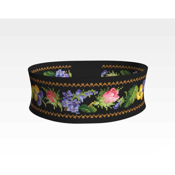 Заготовка для вишивки жіночого пояса Сокальська троянда призначена для часткової зашивки бісером або нитками. Схема надрукована на шовковій тканині чорного кольору екологічно чистими стійкими фарбами, що не змиваються після прання. Відріз має достатні запаси для зручного вишивання та подальшого пошиття пояса.
