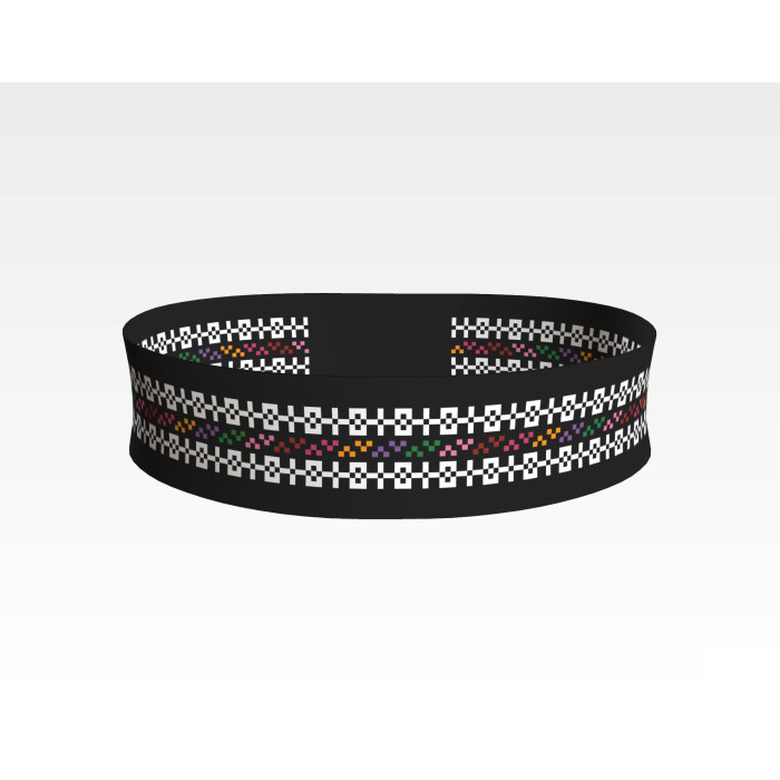 Заготовка для вишивки жіночого пояса Борщівська призначена для часткової зашивки бісером або нитками. Схема надрукована на шовковій тканині чорного кольору екологічно чистими стійкими фарбами, що не змиваються після прання. Відріз має достатні запаси для зручного вишивання та подальшого пошиття пояса.