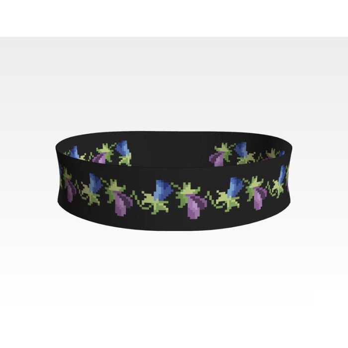 Заготовка для вишивки жіночого пояса Елегантні братки призначена для часткової зашивки бісером або нитками. Схема надрукована на атласі чорного кольору екологічно чистими стійкими фарбами, що не змиваються після прання. Відріз має достатні запаси для зручного вишивання та подальшого пошиття пояса.