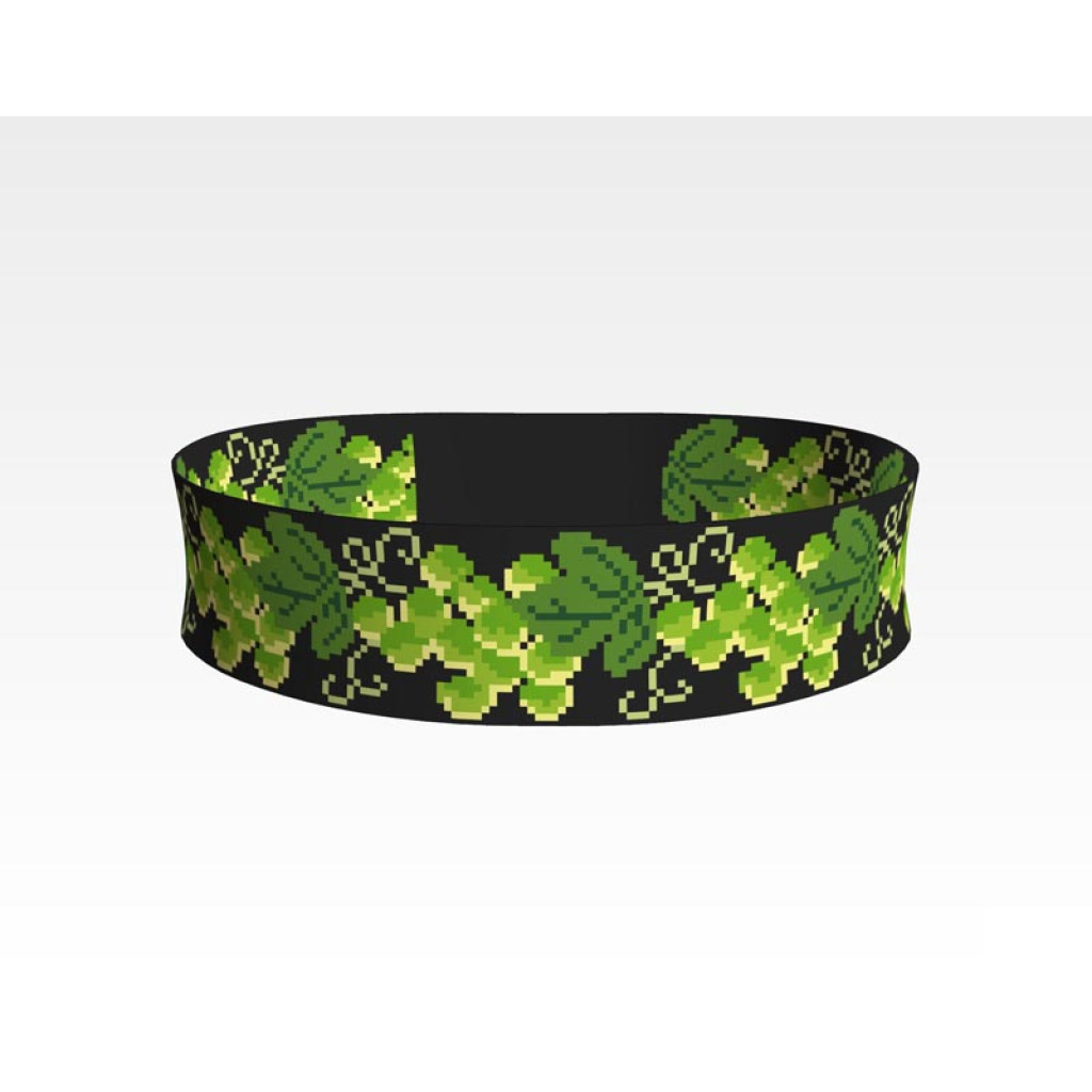 Заготовка для вишивки жіночого пояса Виноград призначена для часткової зашивки бісером або нитками. Схема надрукована на шовковій тканині чорного кольору екологічно чистими стійкими фарбами, що не змиваються після прання. Відріз має достатні запаси для зручного вишивання та подальшого пошиття пояса.