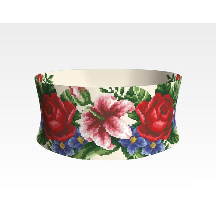 Заготовка для вишивки жіночого пояса призначена для часткової зашивки бісером або нитками. Схема надрукована на шовковій тканині бежевого кольору екологічно чистими стійкими фарбами, що не змиваються після прання. Відріз має достатні запаси для зручного вишивання та подальшого пошиття пояса.