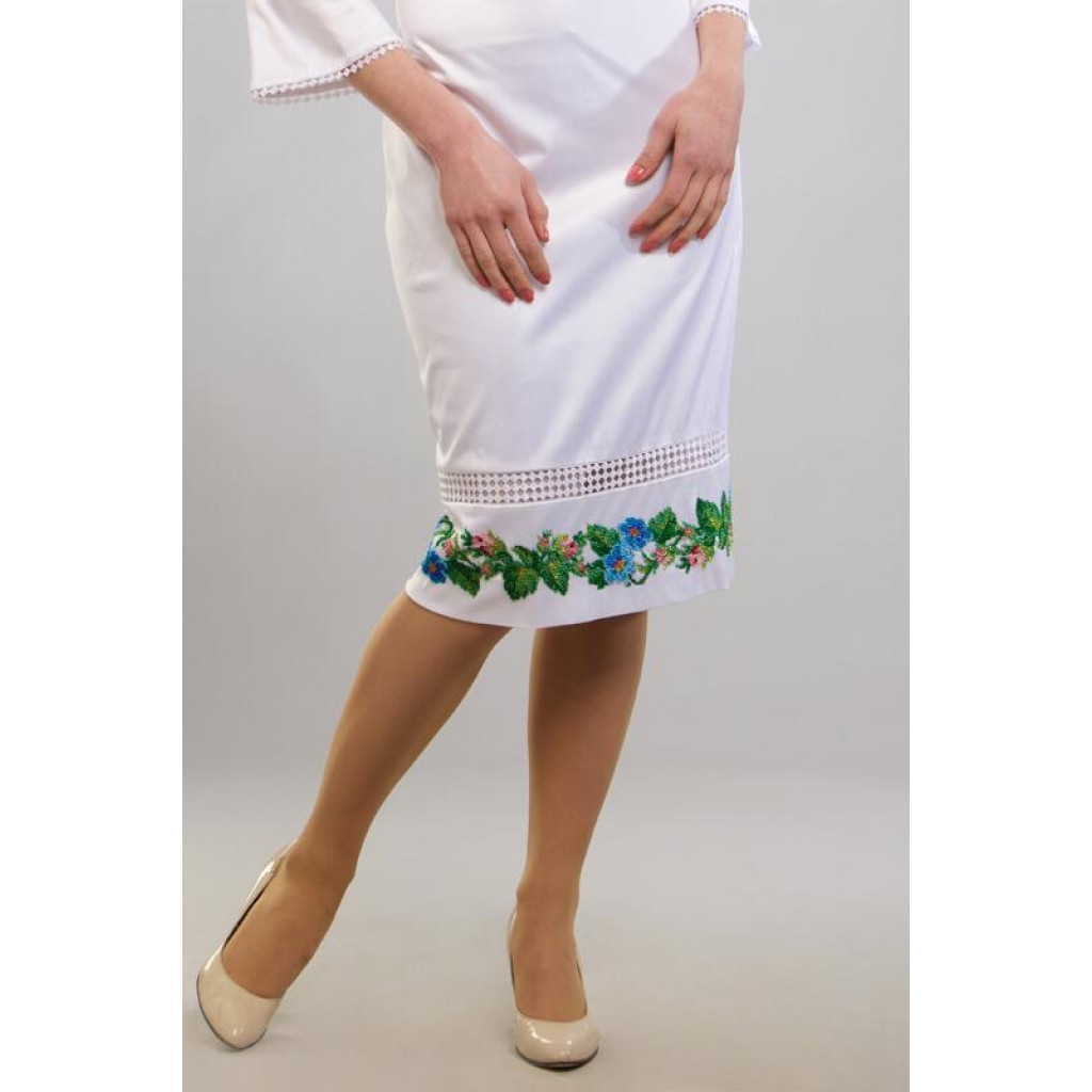СЖ008кБнннн Спідниця жіноча, атлас-коттон, білий. Барвиста вишиванка. Заготовка для вишивки бісером