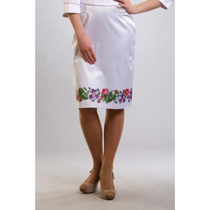 СЖ022кБнннн Спідниця жіноча, атлас-коттон, білий. Барвиста вишиванка. Заготовка для вишивки бісером