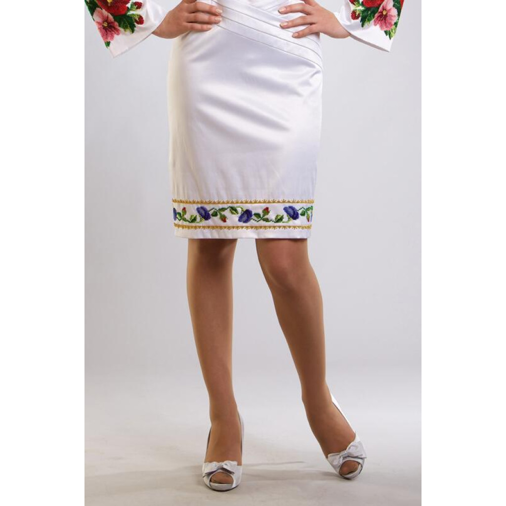 СЖ035кБнннн Спідниця жіноча, атлас-коттон, білий. Барвиста вишиванка. Заготовка для вишивки бісером
