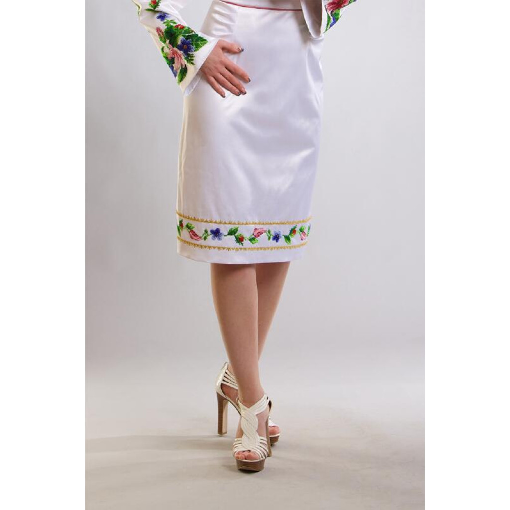 СЖ036кБнннн Спідниця жіноча, атлас-коттон, білий. Барвиста вишиванка. Заготовка для вишивки бісером