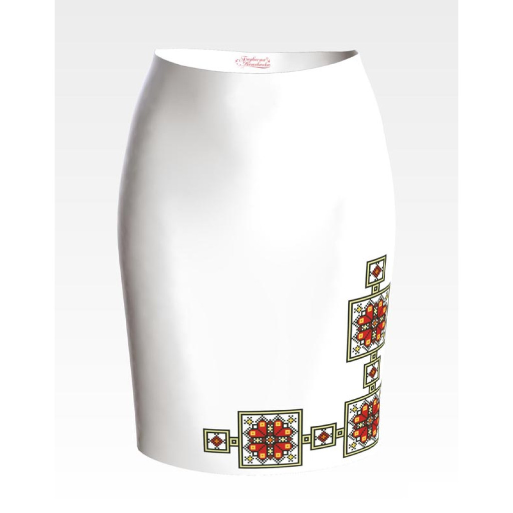 СЖ047кБнннн Спідниця жіноча, атлас-коттон, білий. Барвиста вишиванка. Заготовка для вишивки бісером