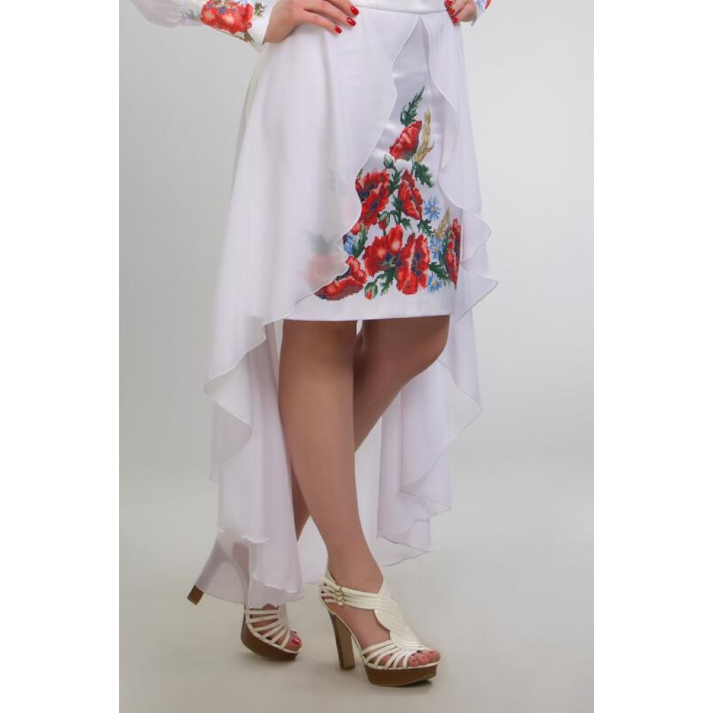 СЖ054кБнннн Спідниця жіноча, атлас-коттон, білий. Барвиста вишиванка. Заготовка для вишивки бісером