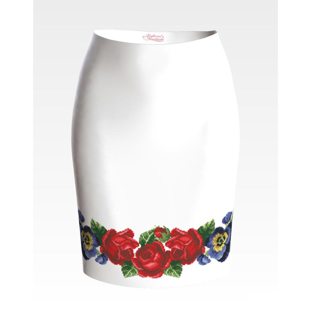 СЖ056кБнннн Спідниця жіноча, атлас-коттон, білий. Барвиста вишиванка. Заготовка для вишивки бісером