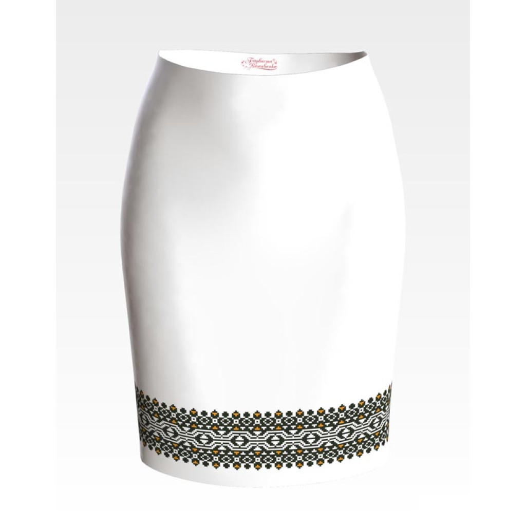 СЖ058кБнннн Спідниця жіноча, атлас-коттон, білий. Барвиста вишиванка. Заготовка для вишивки бісером