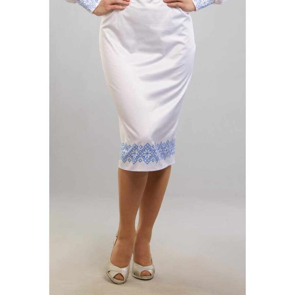 СЖ065кБнннн Спідниця жіноча, атлас-коттон, білий. Барвиста вишиванка. Заготовка для вишивки бісером