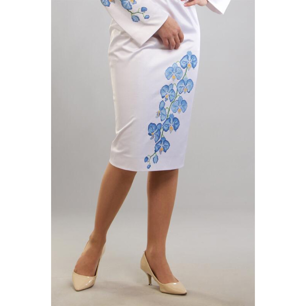 СЖ085кБнннн Спідниця жіноча, атлас-коттон, білий. Барвиста вишиванка. Заготовка для вишивки бісером