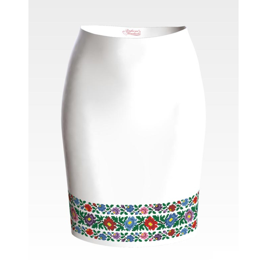 СЖ095кБнннн Спідниця жіноча, атлас-коттон, білий. Барвиста вишиванка. Заготовка для вишивки бісером