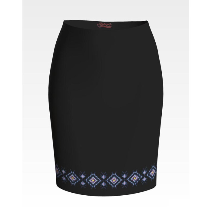 СЖ110кЧнннн Спідниця жіноча, атлас-коттон, чорний. Барвиста вишиванка. Заготовка для вишивки бісером