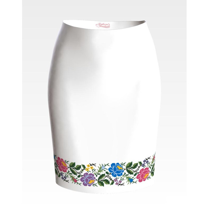 СЖ124кБнннн Спідниця жіноча, атлас-коттон, білий. Барвиста вишиванка. Заготовка для вишивки бісером