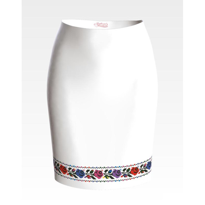СЖ127кБнннн Спідниця жіноча, атлас-коттон, білий. Барвиста вишиванка. Заготовка для вишивки бісером