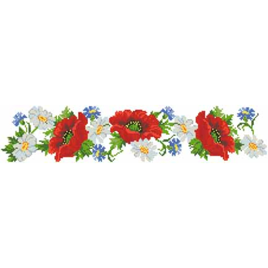 Заготовка для вишивки жіночої спідниці Маки, ромашки, волошки призначена для часткової зашивки бісером або нитками. Схема надрукована на білому габардині екологічно чистими стійкими фарбами, що не змиваються після прання. Відрізи розкроєні з урахуванням запасів для зручного вишивання та подальшого пошиття виробу.