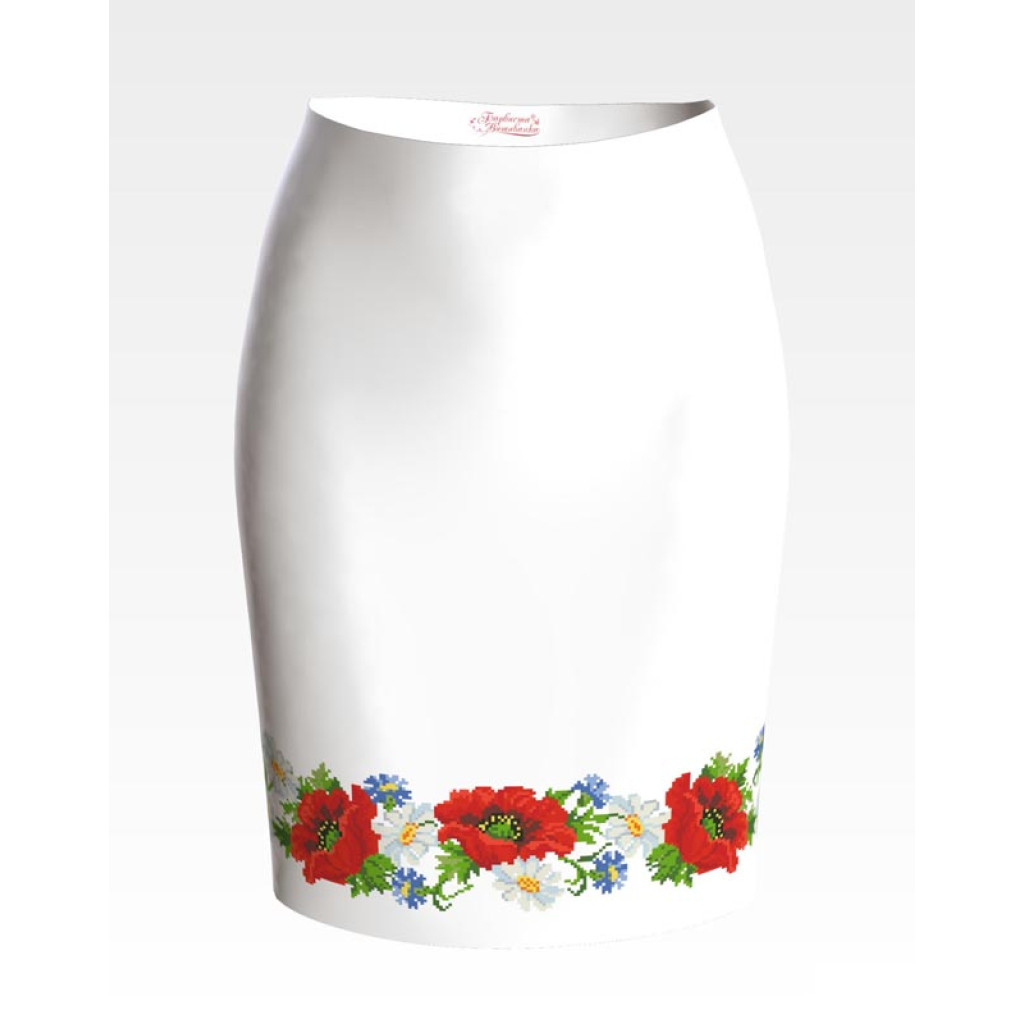 СЖ001пБнннн Барвиста вишиванка Заготовка для вишивки - Спідниця жіноча Маки, ромашки, волошки р.42-54 габардин, білий