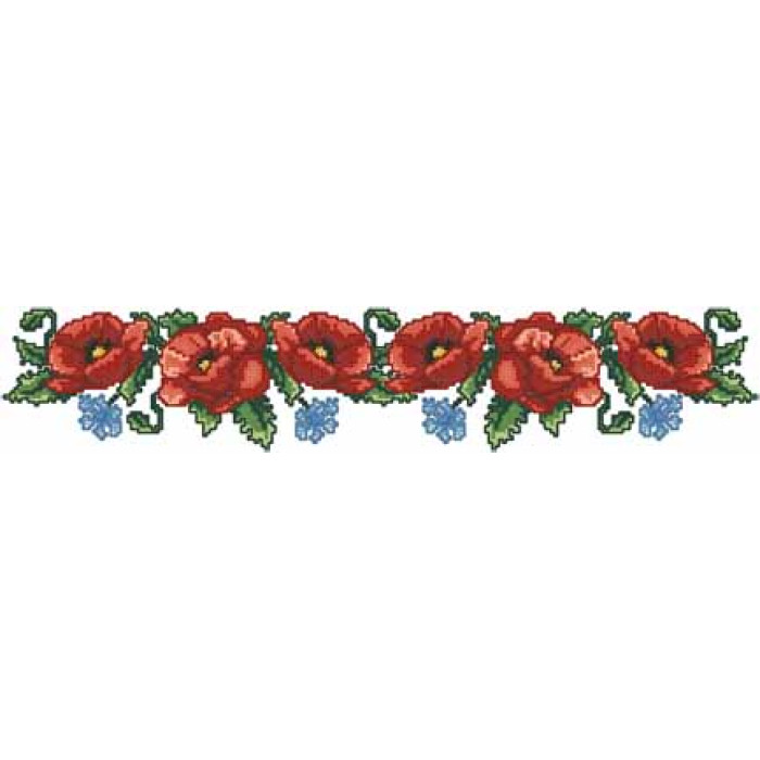Заготовка для вишивки жіночої спідниці Маки, волошки призначена для часткової зашивки бісером або нитками. Схема надрукована на білому габардині екологічно чистими стійкими фарбами, що не змиваються після прання. Відрізи розкроєні з урахуванням запасів для зручного вишивання та подальшого пошиття виробу.